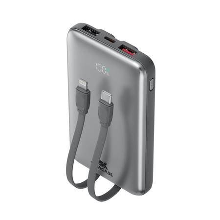 Hordozható, ultragyors töltésű akkumulátor beépített kábelekkel.