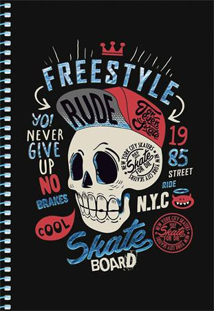 SHKOLYARYK Spirálfüzet, A5, kockás, 80 lap, SHKOLYARYK " Skate board", vegyes