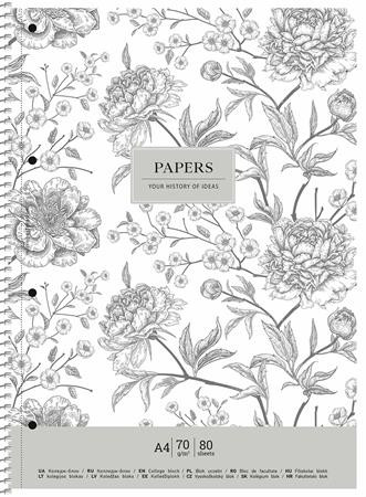SHKOLYARYK Spirálfüzet, A4+, kockás, 80 lap, SHKOLYARYK "Vintage flowers", vegyes