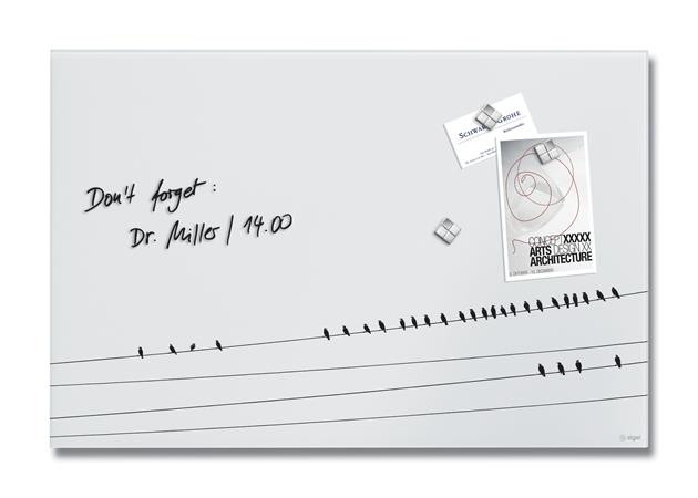 SIGEL Mágneses üvegtábla, 48x48x1,5 cm, SIGEL "Artverum® ", Little birds mintázat, matt