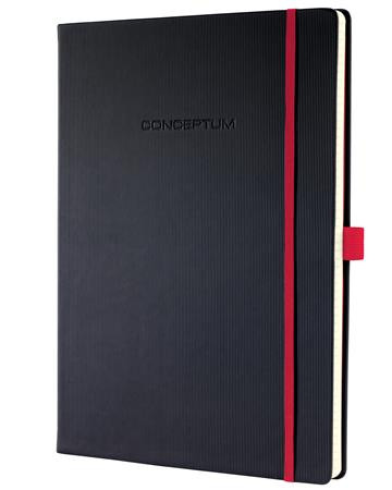 Keményfedeles, klasszikus fekete "Conceptum" jegyzetfüzet piros kiegészítőkkel