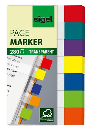 SIGEL Jelölőcímke, műanyag, 7x40 lap, 12x50 mm, SIGEL "Clear Mini", vegyes szín