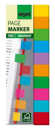 SIGEL Jelölőcímke, műanyag, 10x50 lap, 44x12,5 mm, SIGEL, vegyes színek