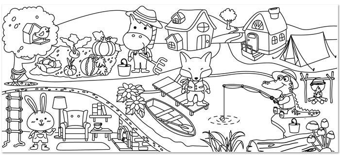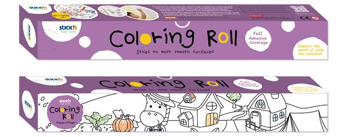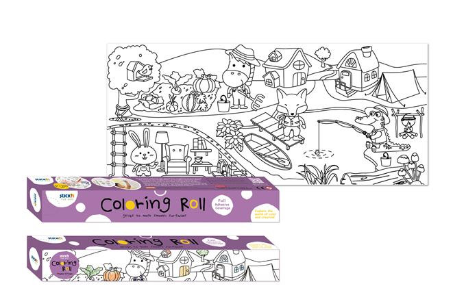 STICK N Színező tekercs, öntapadó, 31x355 cm, STICK N, vidám falu