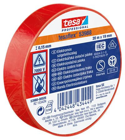TESA Szigetelőszalag, 19 mm x 20 m, TESA "Professional", piros