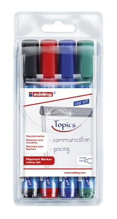 EDDING Flipchart marker készlet, 1,5-3 mm, kúpos, EDDING "380", 4 különböző szín