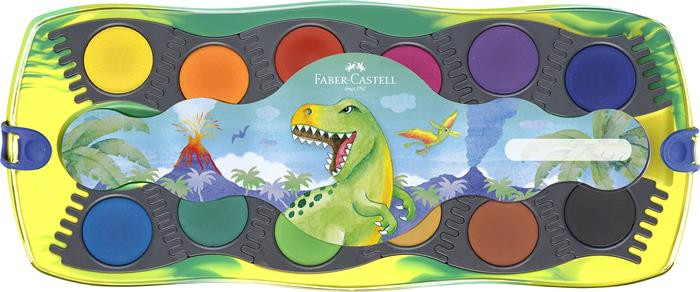 FABER-CASTELL Vízfesték, 12 darabos, összeilleszthető, FABER-CASTELL "Dinoszaurusz"+1 tubus fehér tempera + dinoszaurusz matrica