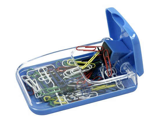 - átlátszó műanyag testű gemkapocstartó, mágneses fedéllel
