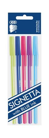 ICO Golyóstoll készlet, 0,7 mm, kupakos, 5 különböző testszín, ICO "Signetta Mix", kék