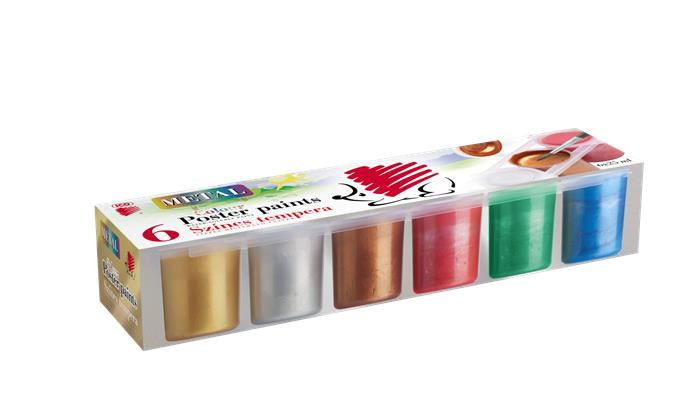 ICO Tempera készlet, tégelyes, ICO "Süni", 6 különböző metal szín