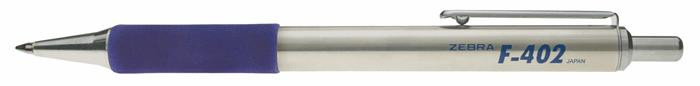 ZEBRA Golyóstoll, 0,24 mm, nyomógombos, rozsdamentes acél, kék tolltest, ZEBRA "F402", kék