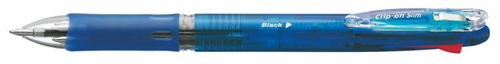 ZEBRA Golyóstoll, 0,24 mm, nyomógombos, négyszínű, ZEBRA "Clip-on Slim 4C", kék