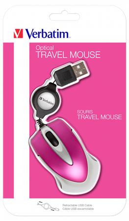 VERBATIM Egér, vezetékes, optikai, kisméret, USB, VERBATIM "Go Mini", ezüst-ciklámen