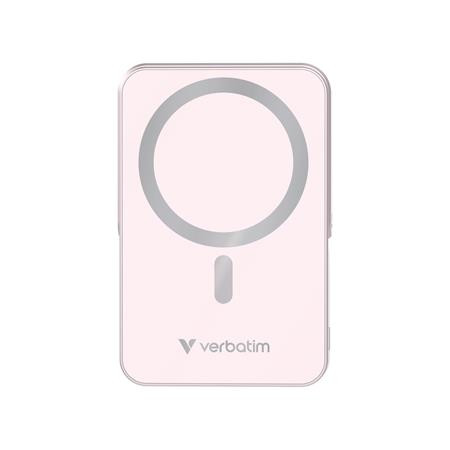 VERBATIM Power bank, mágneses (vezeték nélküli), 10.000mAh, VERBATIM "Charge n Go", rózsaszín