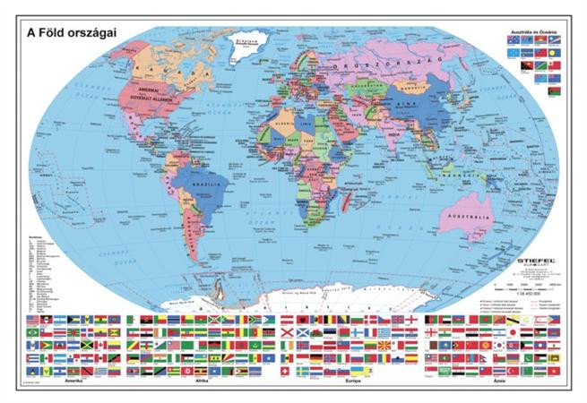 STIEFEL Falitérkép, 70x100 cm, fémléces, Föld országai, STIEFEL