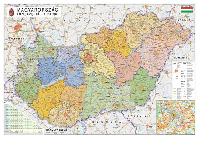 STIEFEL Falitérkép, 70x100 cm, fémléces, Magyarország járástérképe, STIEFEL
